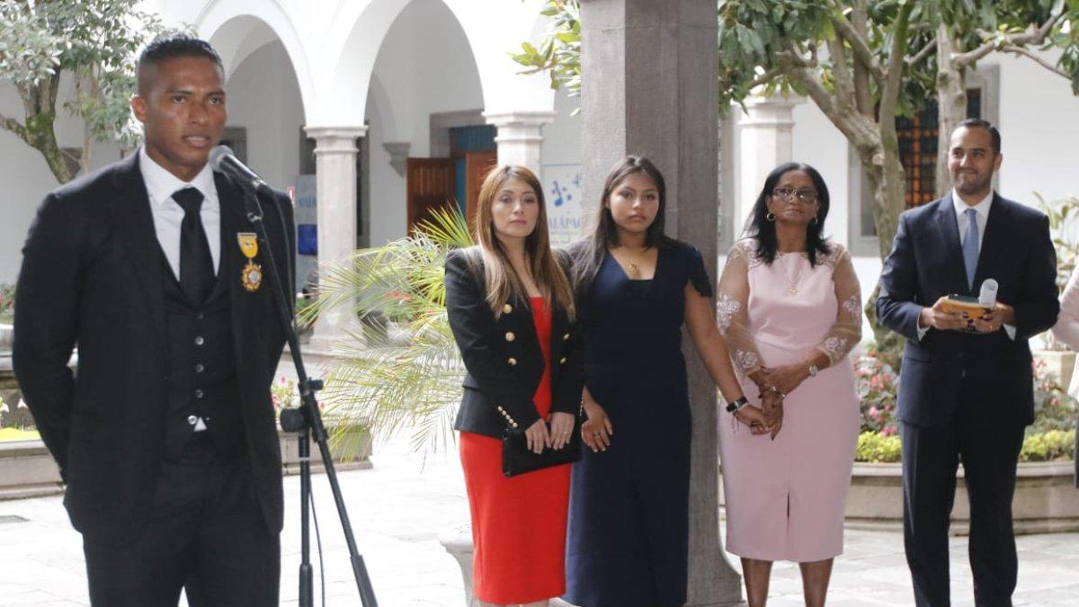 El futbolista ecuatoriano fue condecorado por el presidente Lenín Moreno por su trayectoria en el fútbol inglés, con el Manchester United.