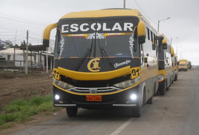 Un total de 160 vehículos, que trabajan en transportación escolar e institucional, permanecieron estacionados en el kilómetro 1 de ingreso a Santa Elena, este lunes 7 de enero de 2019. De ese modo, los transportistas manifestaron su rechazo tras el anuncio del incremento al precio del galón de diésel a partir del 15 de enero.