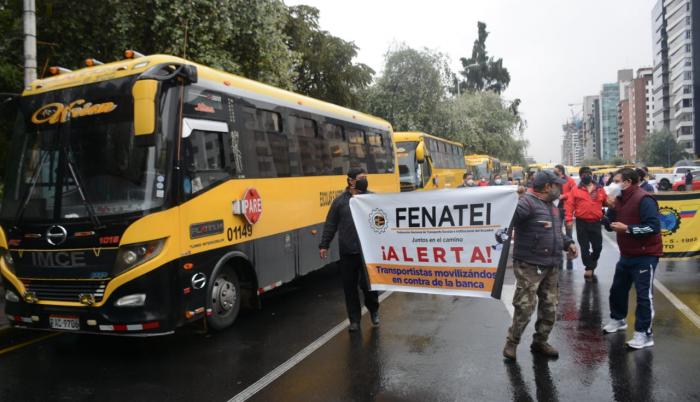 Los transportistas institucionales protestan contra el gobierno de Moreno