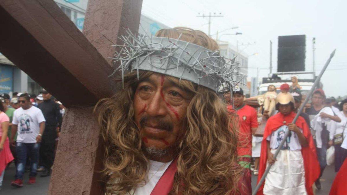 En esta procesión donde los presentes imploran perdón por sus faltas, resalta la figura de Luis Prudente, de 46 años, quien representa a Jesús en el calvario del vía crucis, este humilde hombre cumplió tres décadas de simular al hijo de Dios.