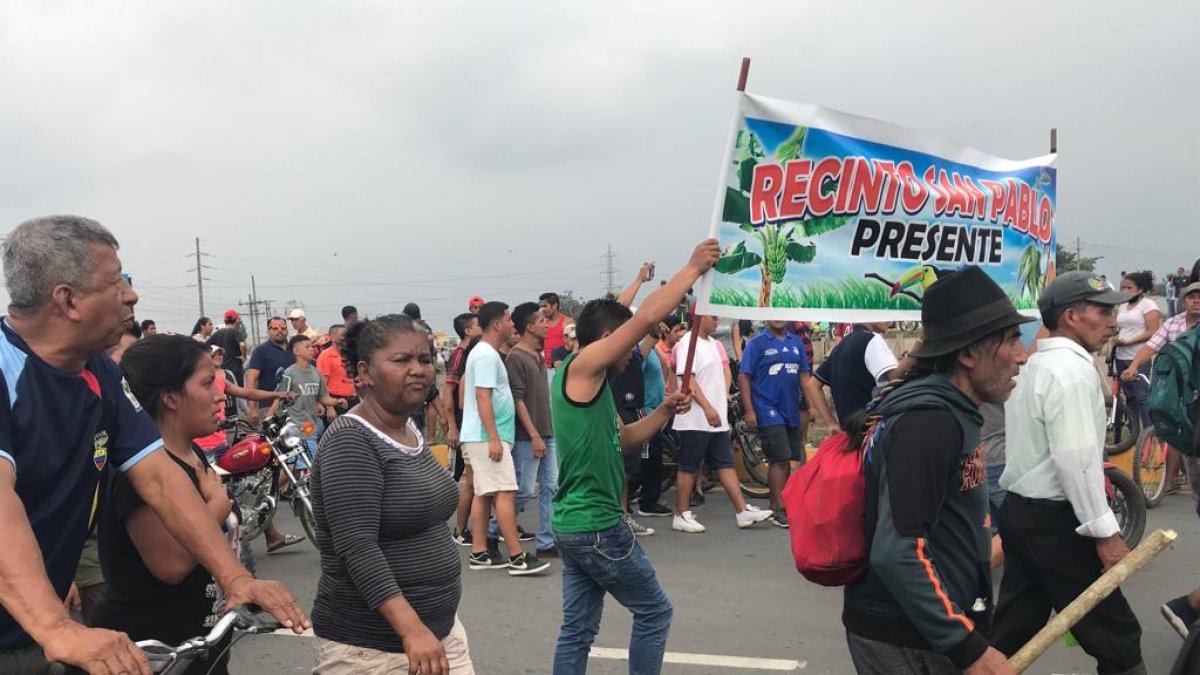 En el sitio, el representante de las comunidades Santiago Chamán dialogó con el alcalde de El Triunfo, David Martillo, al que enfatizó que se trataba de una marcha pacífica.