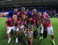 Según se observa en las imágenes, la camioneta de la Policía se impactó contra uno de los costados del articulado del sistema de transporte municipal. Debido al choque, el automotor de la fuerza pública resultó con daños en la parte delantera y el capot se desprendió.