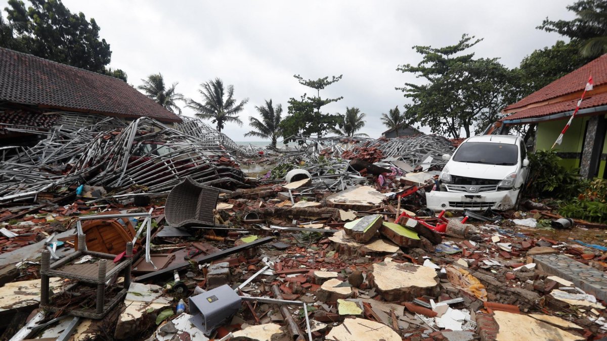 Las autoridades achacan el maremoto que llegó a las playas sin activar las alarmas al desplome de parte de la isla donde se encuentra el volcán Anak Krakatao, en el citado estrecho, a raíz de una fuerte erupción.