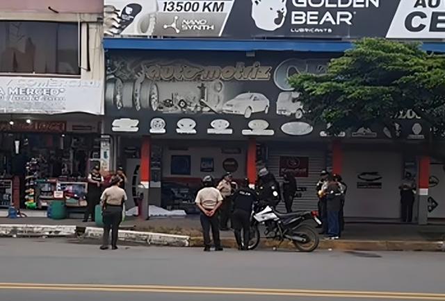 Tras su asesinato, miembros de la Policía Nacional cercaron parte de la avenida para realizar pericias y recoger el cadáver. El cuerpo yacía fuera del negocio.
