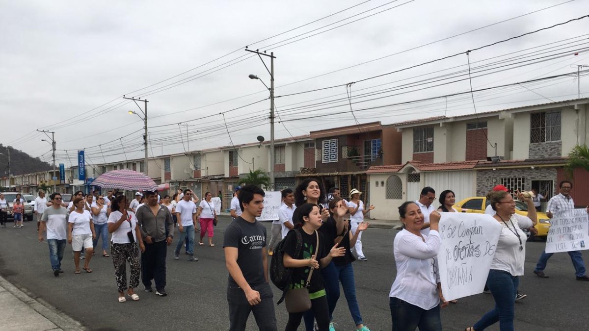 Vestidos con camiseta blancas y con carteles en mano, aproximadamente 60 vecinos llegaron hasta el primer redondel del ingreso al sector. Luis Tomalá, vicepresidente del Comité de Líderes de Mucho Lote 2, explicó que decidieron congregarse porque están cansados de realizar solicitudes al Municipio de Guayaquil y a las autoridades de seguridad y control por el creciente índice delincuencial.
