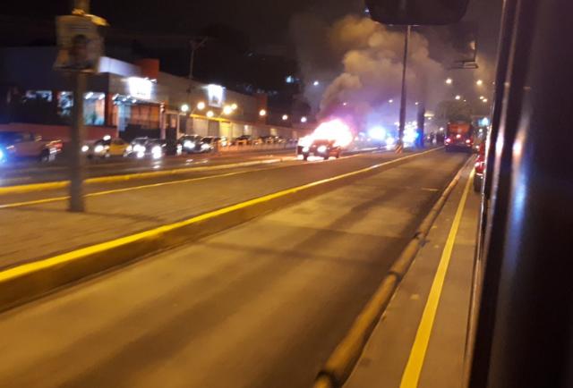El siniestro obligó a los conductores de la metrovía desviar su ruta fuera del carril exclusivo, en ambos sentidos, para evitar algún percance por una posible explosión del automotor. El evento provocó congestionamiento vehicular por varias cuadras, pero no se observan personas heridas.