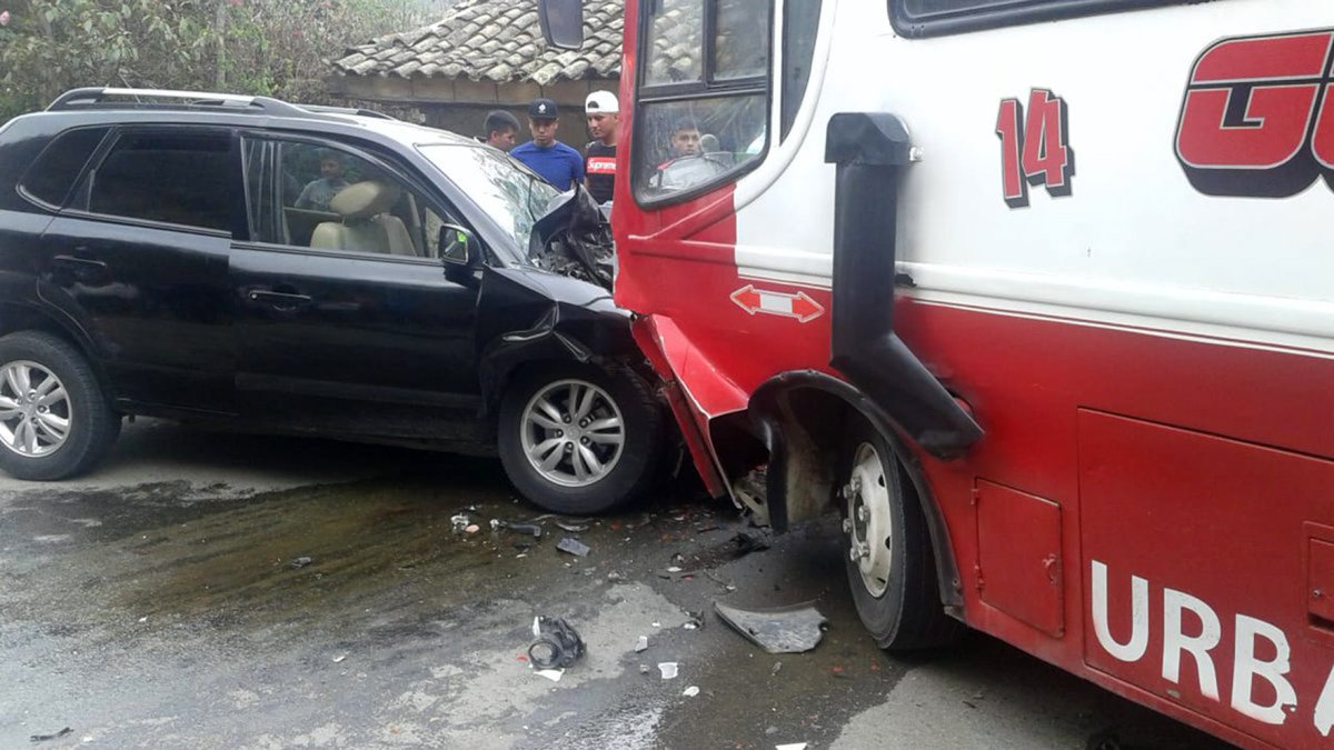 El siniestro ocurrió al mediodía de este lunes 8 de octubre en el sector de Bullcay, vía Cuenca-Gualaceo. Un Hyundai Tucson negro de placa PCCC-4272, chocó frontalmente contra un bus urbano que cubría la ruta Puente Europa-Gualaceo.