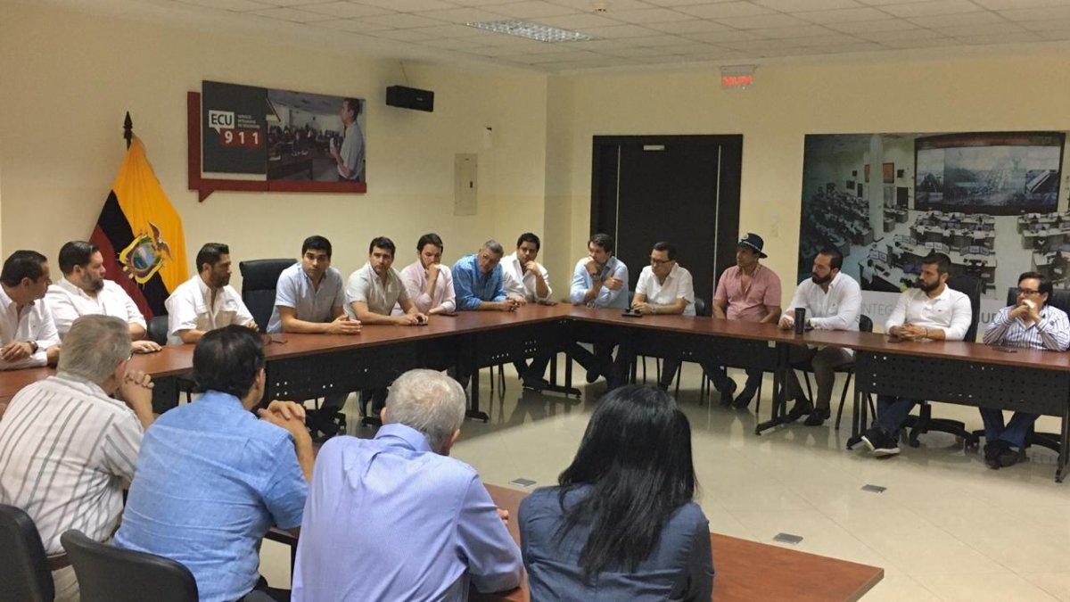 GUAYAQUIL | El vicepresidente @ottosonnenh junto con @XavierLazoG e @IvanOntanedaB, mantuvieron una reunión con representantes del sector productivo del país, con el fin de buscar mecanismos para el desarrollo económico en el Ecuador. #EcuadorPaísDePaz pic.twitter.com/hj9gZscDDs