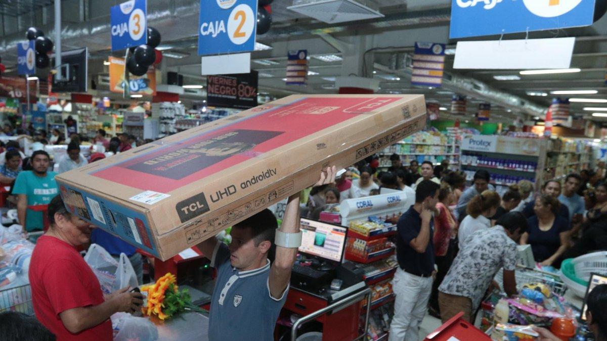 Pero las personas no solo salieron a adquirir regalos y electrodomésticos, sino también alimentos. En TIA, por ejemplo, uno de los productos que más llevaban es una funda con 20 libras de arroz, más un litro de aceite, un atún y una fundita de aceite, todo ello por unos seis dólares. En forma general, los supermercados fueron uno de los negocios con más compradores.