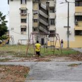 Uno de los espacios públicos está cerrado con cadenas hace más de seis meses en esta zona del sur de