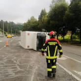 El camión peridó el carril de circulación y se volcó