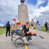 Atsushi Yao recorre América a pie y su destino final es Ushuaia, en Argentina. Visitaba Quito cuando