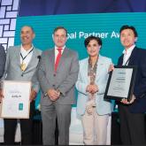 Steve Lee, presidente ejecutivo de Kia, recibió el Global Partner Award de manos de Nikhil Seth, director