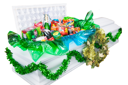Una funeraria ofrece ataud como parte de canasta navidena