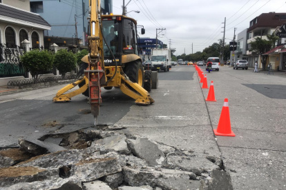 Un carril de la calle Miguel H. Alcivar esta cerrado por trabajos en el pavimento