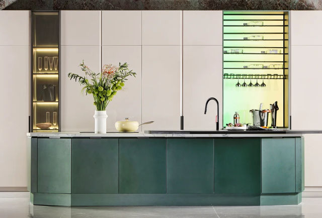 Finalmente, la tendencia vertical también debe considerar la evolución de las cocinas inteligentes. Se recomienda que estos gabinetes estén equipados con tomas de corriente y puertos de carga internos de fácil acceso (como enchufes USB), ya que muchos pequeños electrodomésticos de última generación y dispositivos inteligentes de cocina requieren estar permanentemente conectados a la electricidad. Prever estas conexiones ocultas garantiza que la limpieza visual no se vea arruinada por cables colgantes.