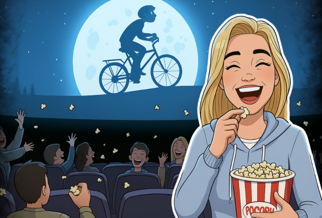 Yo tenía ocho años cuando vi E.T. el Extraterrestre. La cita fue en el Policine (¡sí, Policine en el Policentro!). Allí estaba mi madre, con paciencia de santa, sosteniendo entradas para ella, sus dos hijas y una larga hilera de amigas que, como mi hermana y yo, queríamos ser de las primeras en ver a ese ser de otro mundo surcar el cielo.