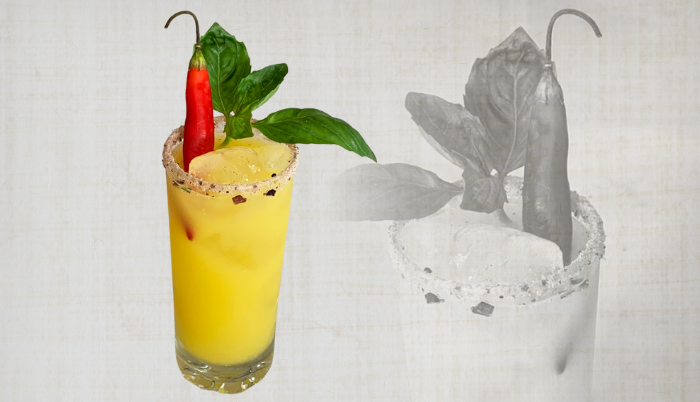 - Preparación: En un vaso de coctelera coloca las hojas de albahaca, la punta del ají (puede ser más, depende del picor que se quiere), el azúcar, el gin y el vino blanco. Con la ayuda de un muddler o mano de mortero, procede a moler todo para que suelten sus aceites y se integren a los líquidos. Luego incorpora el hielo, los jugos de naranja y maracuyá, coloca la tapa para agitar fuertemente la coctelera.