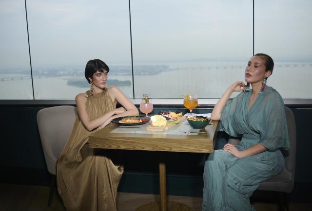Uno de los protagonistas es el celeste que evoluciona hacia un tono “piscina”. Zea de Furlato lo describe como un color que combina azul con un toque de verde, generando una pausa visual dentro del conjunto. Es un matiz fresco, contemporáneo y versátil. Puede utilizarse en vestidos completos, trajes sastre livianos o conjuntos coordinados. También funciona en accesorios estructurados que aporten contraste a estilismos neutros.