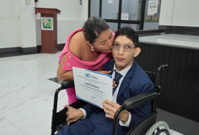 Detrás del logro académico también hay una historia familiar marcada por la constancia. Magaly Johana Toala, madre del joven ingeniero, recuerda que su hijo nació con complicaciones debido a la falta de oxígeno al momento del parto. Desde entonces, su vida ha estado dedicada a acompañarlo en terapias, tratamientos y estudios. “Él siempre me decía: ‘mami, yo voy a poder’. Y hoy lo veo convertido en profesional y me siento muy orgullosa”, contó emocionada.