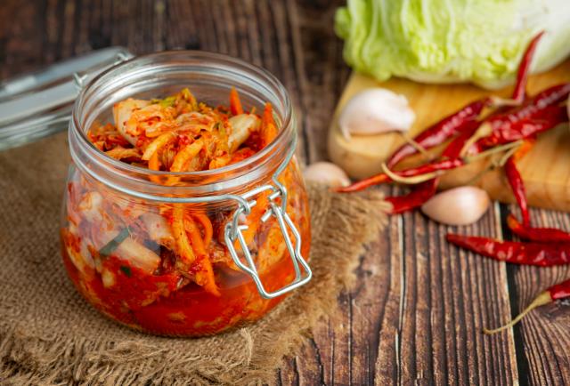 Kimchi y chucrut: Son vegetales fermentados (col coreana picante y col fermentada) ricos en diversas cepas de bacterias lácticas que estimulan el tránsito intestinal.