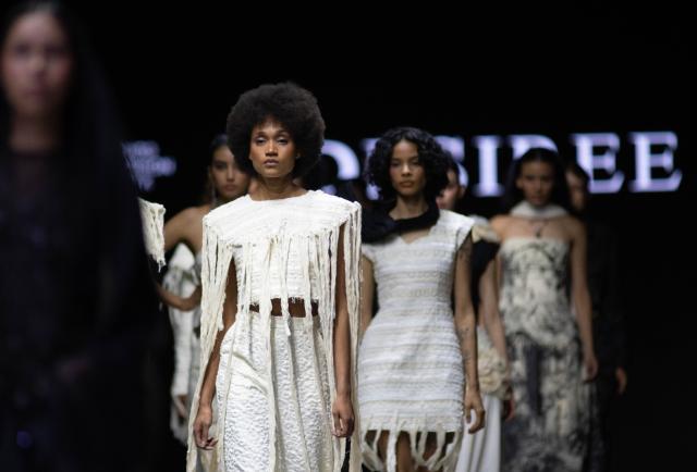 La guatemalteca, Desirée García, ´presentó 'Transición', donde destaca texturas que van del crudo al negro, pasando por crochet artesanal hasta llegar a piezas impresas en 3D que simulan tejido manual, dejando ver su búsqueda constante por tender puentes entre lo ancestral y la innovación material.