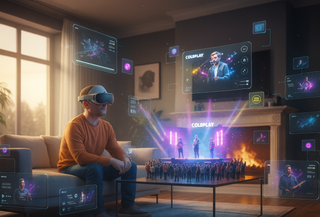 Ahora, con las nuevas Samsung Galaxy XR, sigues en tu sala, con el sofá a un lado y tu gato cruzando frente al televisor. Solo que frente a ti se abre una versión extendida del concierto: el escenario aparece flotando sobre tu mesa, los músicos se mueven en tamaño real, puedes girar la cabeza y ver a la multitud… y con un gesto acercarte tanto que distingues las medias de colores de Chris Martin.