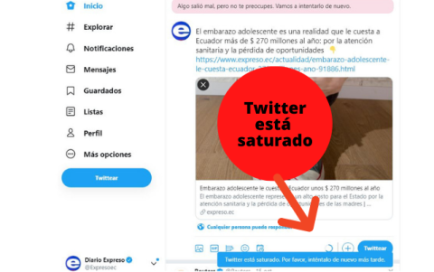 "Twitter está saturado", es el mensaje que se lee a la hora de publicar un tuit.
