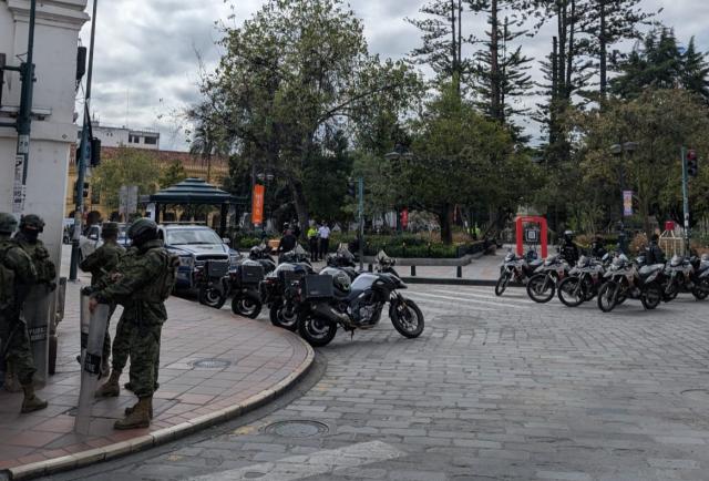 Con vallas metálicas y un fuerte control militar y policial amaneció el Centro Histórico de Cuenca este miércoles, 8 de octubre de 2025, en el marco de la visita del presidente Daniel Noboa a la provincia del Azuay.