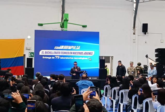 La agenda del mandatario se cumplió en la Unidad Educativa Manuel J. Calle donde entregó la repotenciación de laboratorios para uso de los estudiantes de bachillerato tecnológico.