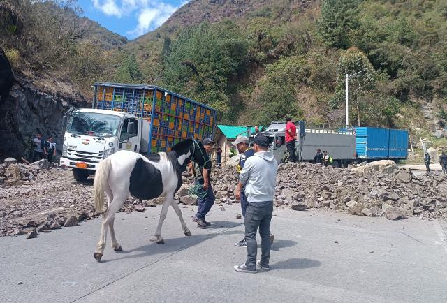 Diario Expreso llegó hasta el punto del cierre (kilómetro 63) y se constató que decenas de conductores fueron sorprendidos por el paro y permanecieron en la carretera hasta que se logró habilitar una angosta trocha de vía.
