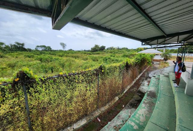 Mientras uno se adentra más, el panorama es aún peor. Lo que en algún momento fue el diamante de béisbol, hoy es un terreno salvaje donde reina el monte. Las graderías están invisibilizadas por la vegetación. No hay forma de distinguir el campo, los senderos, ni siquiera las bases de juego. Todo fue engullido por el olvido.