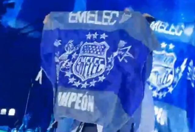 Durante el show de Cristian Castro, el artista mexicano tomó la bandera de Emelec que le dio un fanático y bailó junto a ella por algunos segundos. pic.twitter.com/YU6hsRq5mN