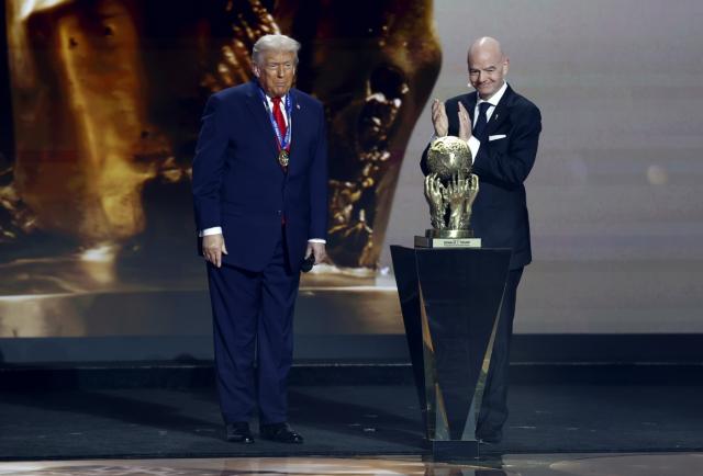 El presidente de Estados Unidos, Donald Trump (izq), recibe el Premio de la Paz de la FIFA de manos del presidente de la FIFA, Gianni Infantino.EFE