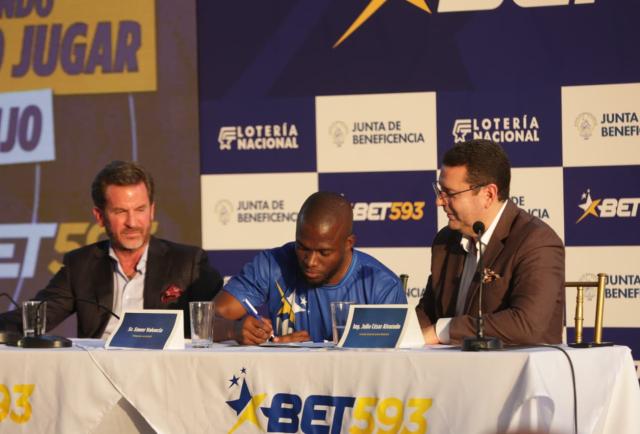“Bet593 es hablar de juegos en línea con el respaldo de Lotería Nacional. Creemos en dos servicios: servicio y solidaridad, y apoyo en la gran obra de la Junta de Beneficencia. Ahora alguien que ha llevado la camiseta con orgullo y ha dado momentos inolvidables… cuando se habla de compromiso absoluto se habla del capitán de Ecuador, Enner Valencia, nuevo embajador de Bet593, que ayuda con la obra de la Junta en todo el país”, expresó Alvarado luego le entregaron la camiseta con el nombre de Enner.