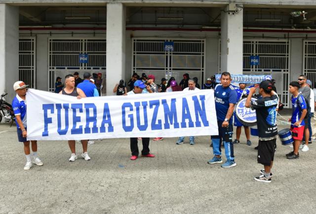 Al mediodía del viernes 16 de enero, decenas de personas, entre hinchas, socios e integrantes de la barra Boca del Pozo, se congregaron en los alrededores del escenario deportivo, ubicado en el centro-sur de Guayaquil, para exigir la salida de Guzmán.