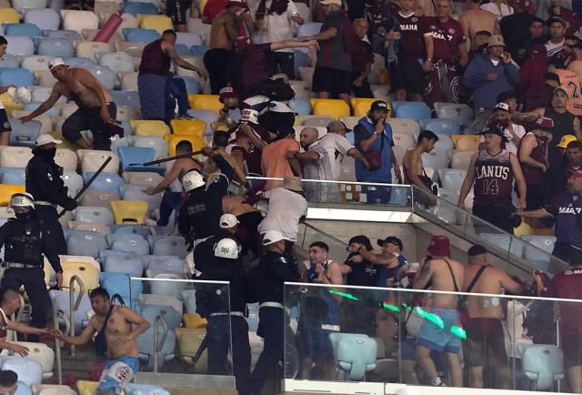 Lo que no te muestra la Conmebol. Disturbios en el Maracaná, vuelan gases, palazos y balas de goma. Una vergüenza lo de la policía brasilera con los hinchas de Lanús. https://t.co/XPMkSfWOzp pic.twitter.com/aWF2YxxgXV