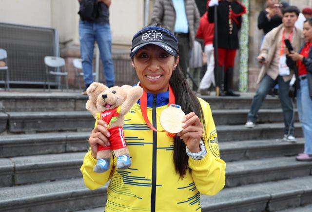 La maratonista inauguró el medallero dorado del Team Ecuador en los Juegos Bolivarianos. Dedicó la presea a su familia