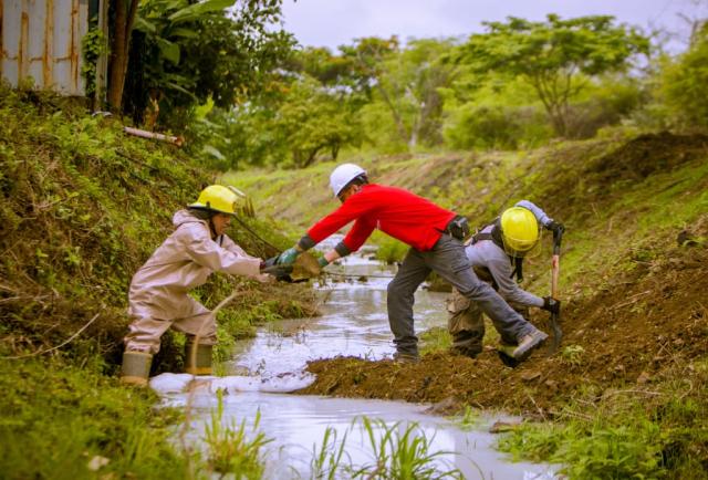 Unidades del Cuerpo de Bomberos permanecen en el lugar brindando apoyo y monitoreo permanente, mientras que personal de Emapag e Interagua también se encuentra en el sitio realizando evaluaciones técnicas de la zona.