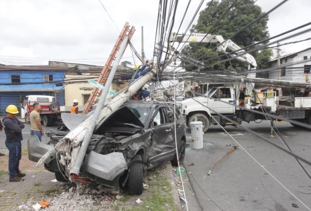 Adicionalmente al poste derribado, otro más cayó a una cuadra de distancia, por efecto de la tensión de los cables conectados entre sí. Esa situación también provocó un corte de energía eléctrica en cuadras aledañas durante varias horas. Personal de la Corporación Nacional de Electricidad efectuó trabajos técnicos enfocados hasta restablecer el servicio.