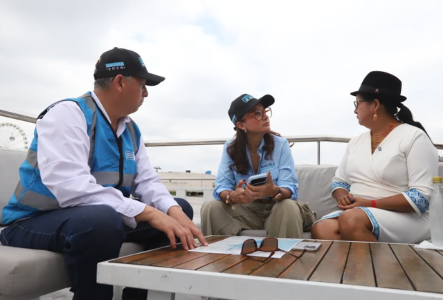 A la embarcación citada para un recorrido junto a los medios de comunicación llegaron Marcela Aguiñaga y Lourdes Tibán, prefectas del Guayas y Cotopaxi respectivamente, conversando con una naturalidad, como si sus tiendas políticas —la Revolución Ciudadana y Pachakutik— no se hubiesen desgranado históricamente en conflictos nacionales; llegaron entre risas, compartiendo pantalla para sus redes sociales y con una clara agenda de creación de contenido, conscientes de que hoy la política también se legisla desde un TikTok.