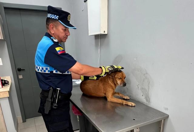 El canino fue llevado al Centro de Bienestar Animal (CBA), ubicado en Francisco de Orellana y Narcisa de Jesús, donde recibió atención veterinaria.
