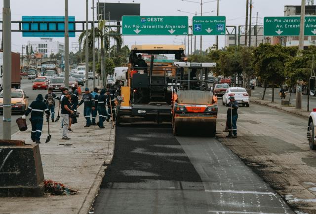 En esta importante arteria vial del sur de Guayaquil se ejecutan tareas de cambio de la carpeta asfáltica