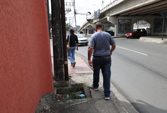 En varias aceras, hay alcantarillas sin tapas, cables colgados y maleza crecida, lo que obliga al peatón a caminar a veces en la calle.