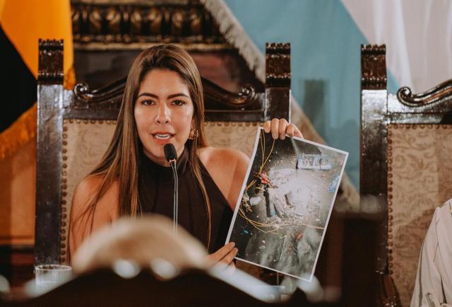 “El ministro publicó en su cuenta de X fotografías donde dice que se han encontrado cuatro cargas explosivas y un dispositivo para activación de los explosivos (...) Dicho esto, queremos respuestas, exigimos rapidez y claridad. ¿Qué celulares se conectaron? Guayaquil no puede esperar, necesita respuestas. No como lo hicieron en el caso de la Bahía”, manifestó la edil, mostrando fotografías.