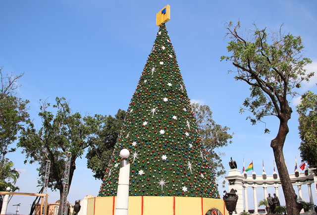 Frente al hemiciclo de la Rotonda, a la altura del bulevar 9 de Octubre, quedó listo el árbol navideño gigante que se encenderá este jueves 4 de diciembre, a las 18:00.