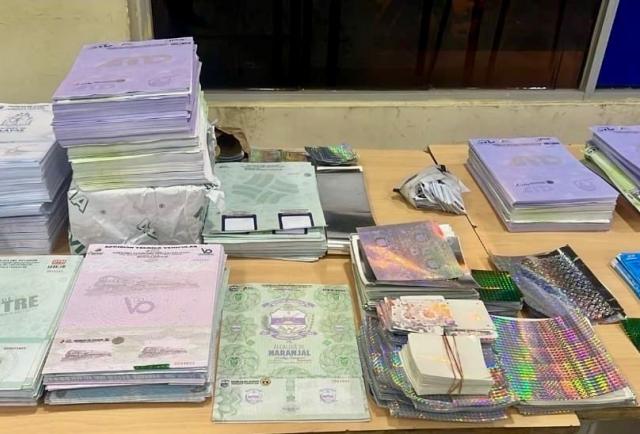 En el predio intervenido, las autoridades hallaron un arsenal de material fraudulento que fue puesto a órdenes de la autoridad judicial bajo estricta cadena de custodia. Entre los indicios más relevantes se encontraron: