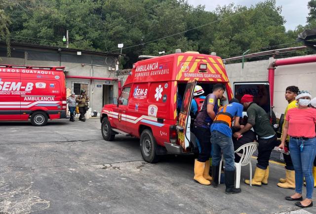 Tras el reporte de trabajadores del lugar, personal del Cuerpo de Bomberos de Guayaquil llegó al sitio con dos unidades de combate, un vehículo de materiales peligrosos y cuatro ambulancias.