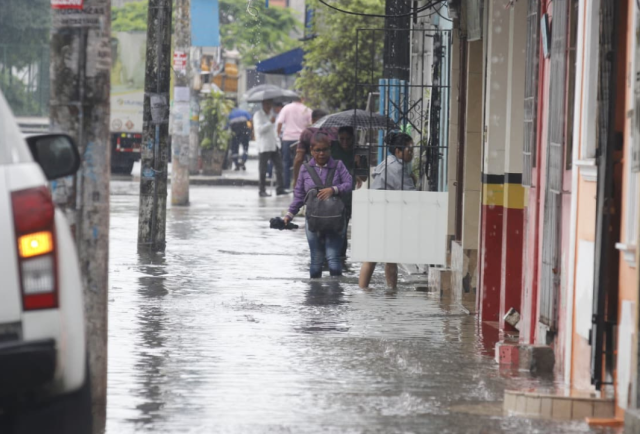 A unos metros, en la avenida Antonio Parra Velasco, el agua estaba en un nivel inferior hasta cerca de las 09:00. Solo daba a los tobillos.