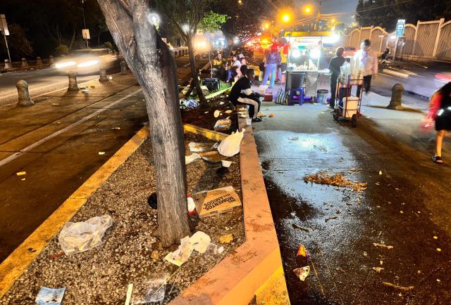 Ayer, después del partido Barcelona vs. Inter Miami, la Av. Barcelona quedó hecha un desastre. Fundas, botellas, cajas… un relajo completo.